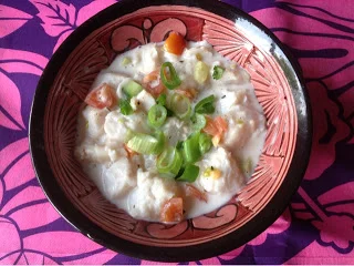 Sunshine, sea and precious time with my family, not to mention a break from cooking. I must admit I did get withdrawal symptoms, but it was lovely not to have to think about the weeks' menu. It was great to try local foods and fresh seafood. One dish that Graham ( hubby) absolutely loved was Ika Mata, a pacific delicacy, beautiful fresh fish marinated in lemon juice and then served in coconut cream. Gorgeous! A really easy starter for a summer dinner party.