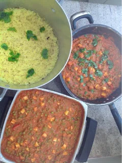 I was involved in the Indian family stall. I made two large vegetarian curries, Peas and Paneer and my dad's basmati rice. There was also a Pea and Potato curry, a chicken curry from Fiji and a Lamb curry. And we were giving roti and samosas, on the plate as an extra.