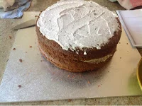 I startedby baking my no fail chocolate cake x3. ( check the recipe earlier in the blog) A great cake for birthdays as it is lovely and moist. We started by icing the layers together and then applying a crumb coat.